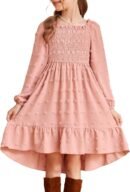 - FEATURES: This is a stylish, fancy girls fall dress that features vintage polka dot design, also with ruffled square neckline and long sleeves, smocked top part, elastic waist, high low swing with side pockets, tiered hemline to bring your cute girl the fashionable look and trendy sense