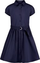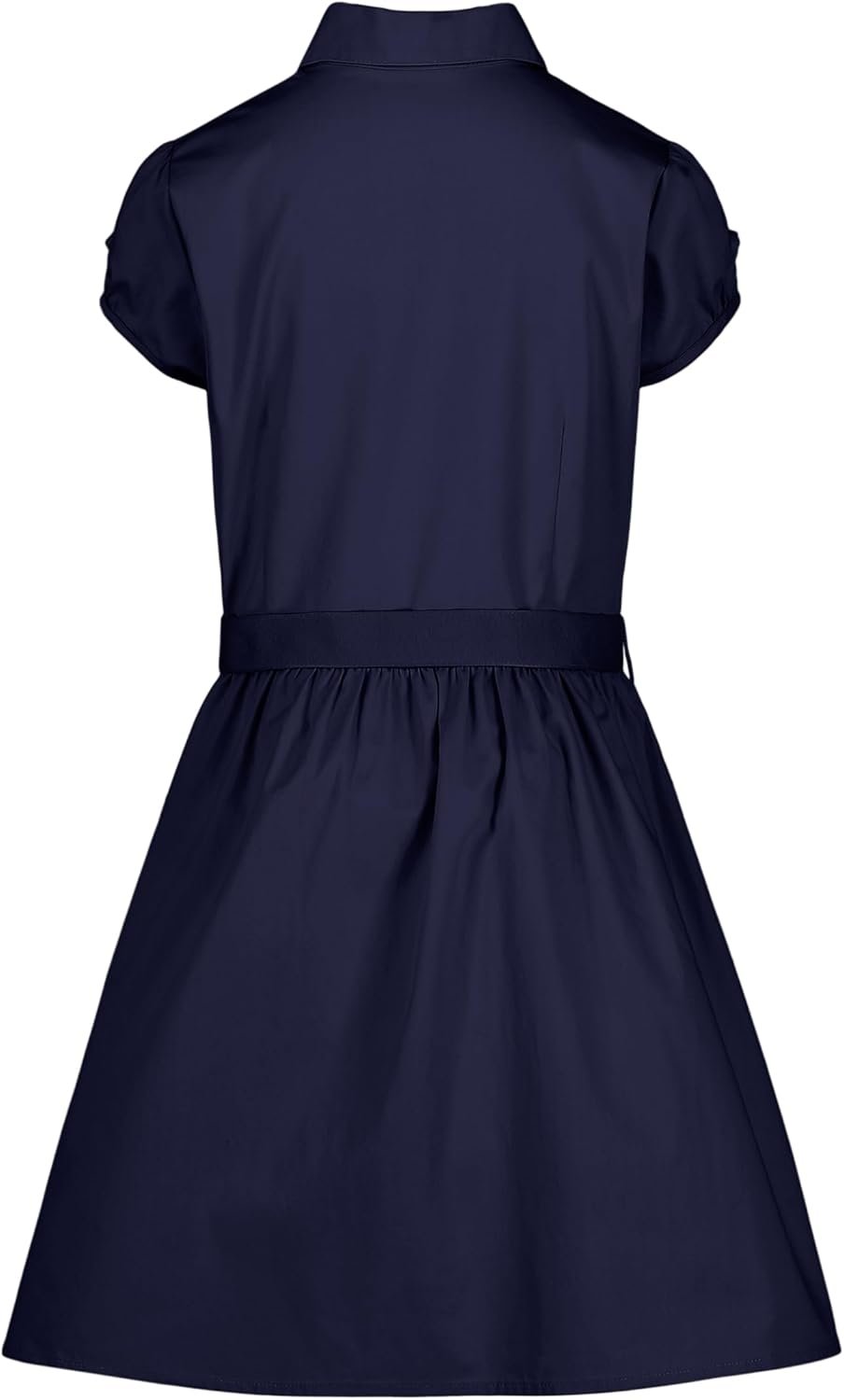 - School uniform collared shirtdress featuring soft puffed short sleeves with keyhole detail